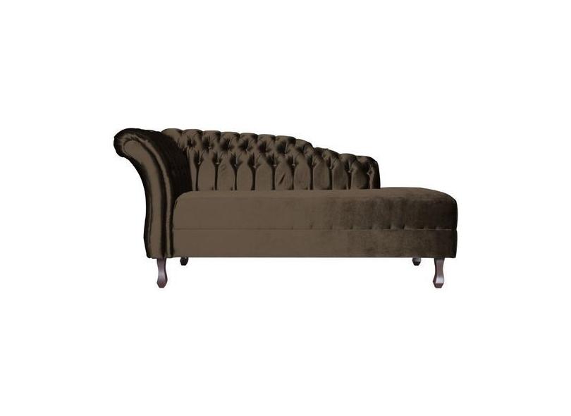 Recamier Decorativo Divã Styllus Lado Direito Veludo Marrom Pés Madeir