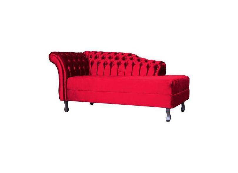 Recamier Decorativo Divã Styllus Lado Direito Veludo Vermelho Pés Made