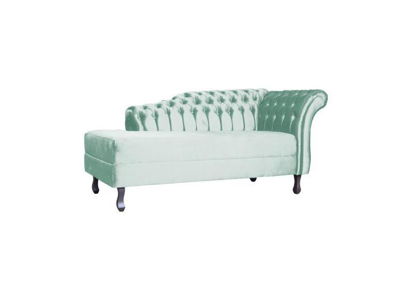 Recamier Decorativo Divã Styllus Lado Esquerdo Veludo Acqua Pés Madeir