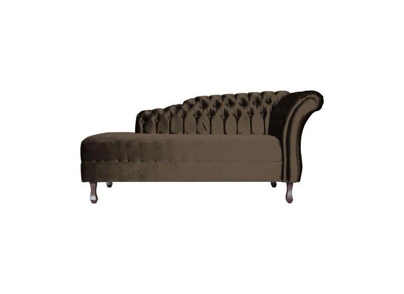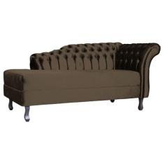 Recamier Decorativo Divã Styllus Lado Esquerdo Veludo Marrom Pés Madei