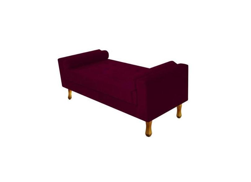 Recamier Divã Félix Baú 90 Cm Estofado Luiz Xv Sofá Suede Bordô Para S