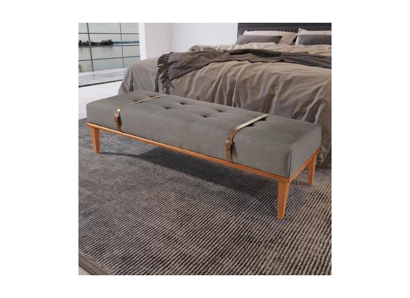 Recamier em Linho 150cm com Cinto em Couro Yarin Cinza - Agarb Decor