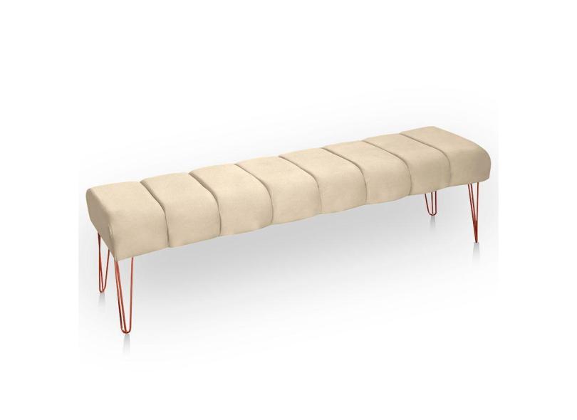 Recamier Estofada Casal Queen Luxo Veludo Cor Bege