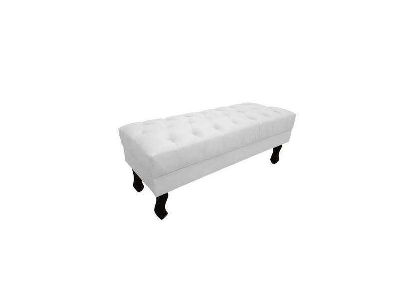 Recamier Luis Xv Capitonê Retrô 100cm Couro Branco Pés Madeira Mz Deco