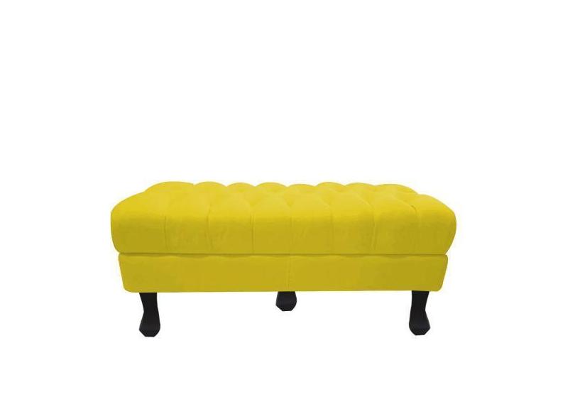 Recamier Luis Xv Capitonê Retrô 140cm Suede Amarelo Pés Madeira Mz Dec