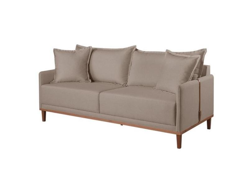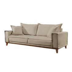 Sof 3 Lugares Almofada Solta Base Madeira Linho Bege Medio M