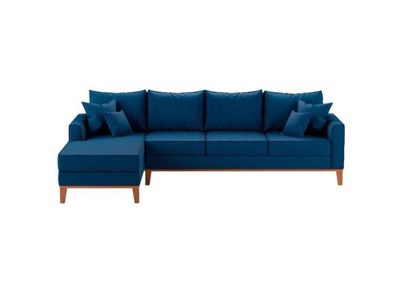 Sof 4 Lugares Beny Com Chaise Esquerdo Linho Azul Marinho