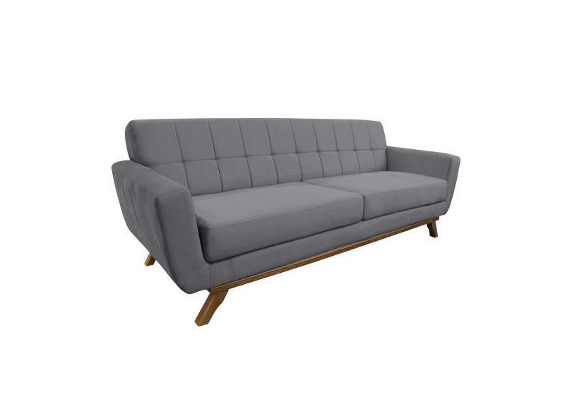 Sofá 03 Lugares 210cm Miami Base Madeira Veludo Cinza - Nexta Casa
