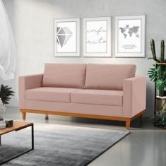 Sofá 03 Lugares Juliette Veludo Rosê Base Madeira Castanho - D'Rossi