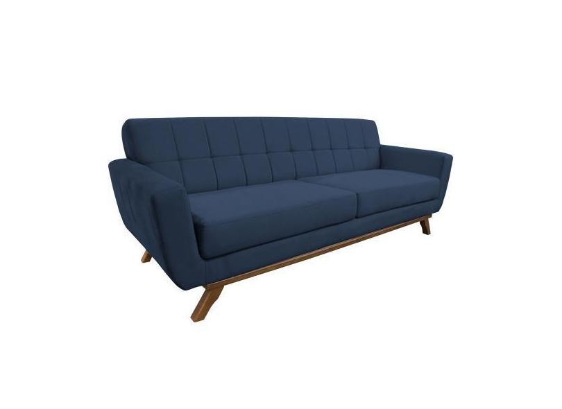 Sofá 04 Lugares 230cm Miami Base Madeira Veludo Azul Escuro - Nexta Ca