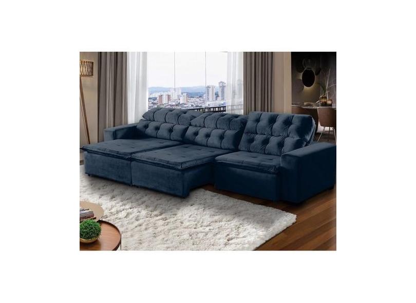Sofá 06 Lugares Retrátil e Reclinável Alasca 320 Cm Pillow Veludo Azul