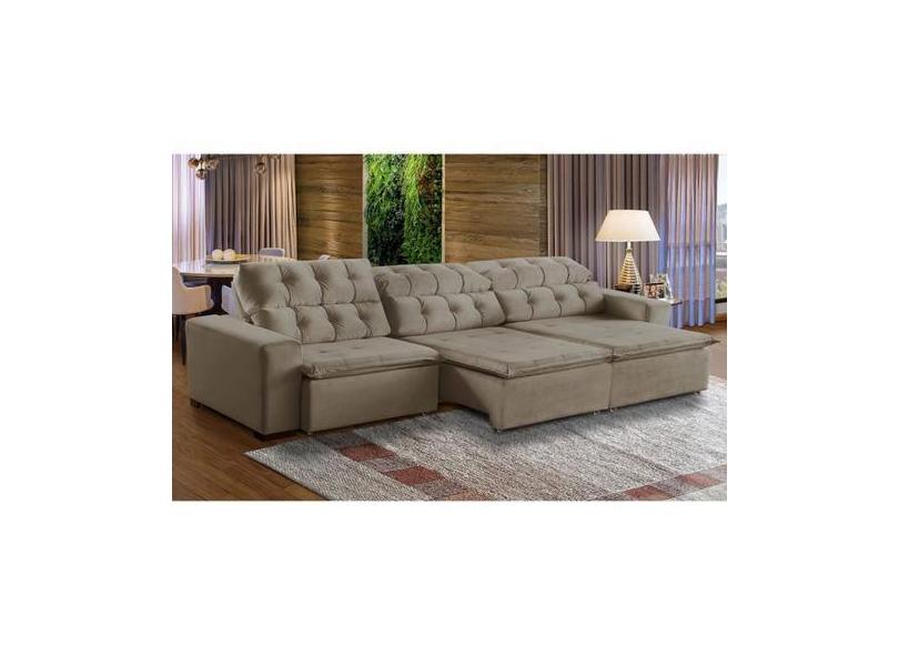 Sofá 06 Lugares Retrátil e Reclinável Alasca 320 Cm Pillow Veludo Bege