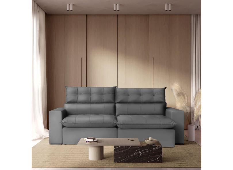 Sofá 190 Cm Retrátil e Reclinável Molas Ensacadas Cinza