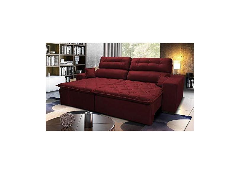 Sofá 2,42m Retrátil e Reclinável com Molas Cama Inbox Confort Tecido Suede Velusoft Vinho