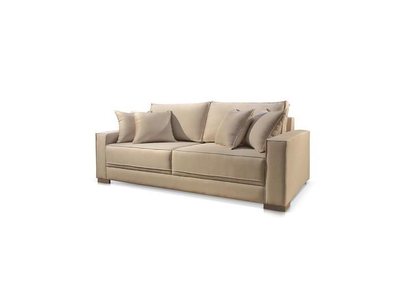 Sofá 2 e 3 Lugares Almofada Solta Linho Bege Medio Helô 2,40m - Poltjá