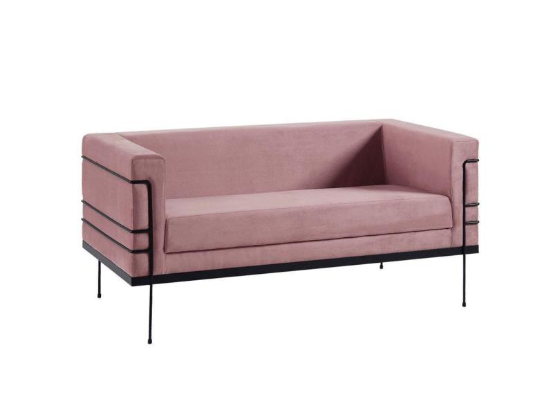 Sofa 2 Lug Base Aço Preto 135 Cm 2064x2 Veludo Rosa Dmobiliario Rosa