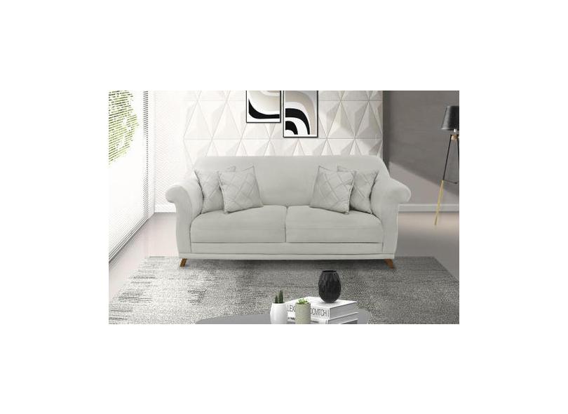 Sofá 2 Lugares 1,60 M Veludo Prata Com Pés De Madeira E 2 Almofadas An