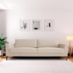 Sofá 2 Lugares 180cm Break Estilo Moderno Linho Pés em Madeira Maciça