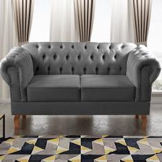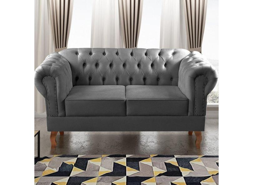Sofá 2 Lugares Decoração Sara Recepção Dom Pedro Chesterfield Cinza grafite