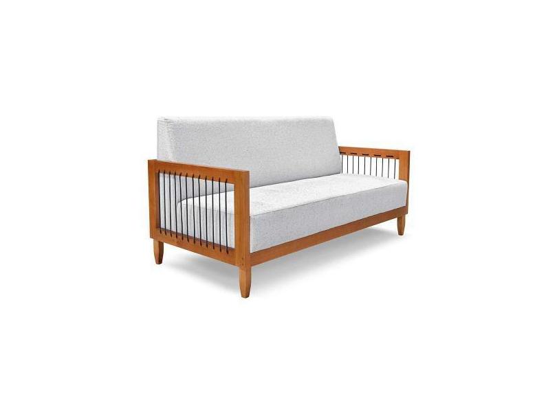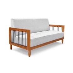 Sofá 2 Lugares Elisabeth Linho Grigio e Madeira - Modern