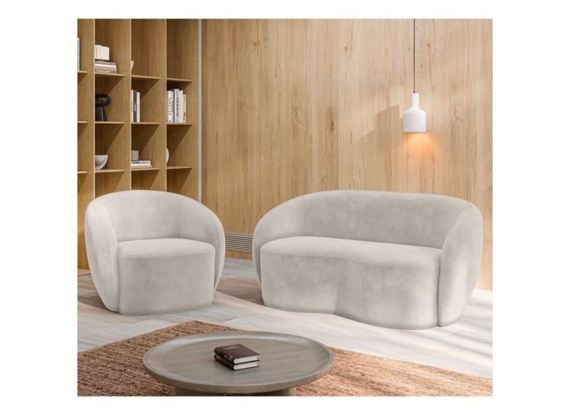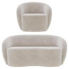 Sofá 2 Lugares Living 160cm E 1 Poltrona Giratória Garbin K04 Veludo Bege - Mpozenato