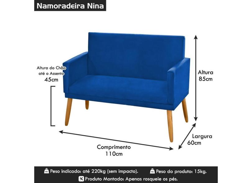 Sofá 2 Lugares Namoradeira Nina Suede Azul Royal
