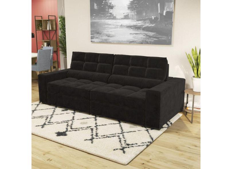 Sofá 2 Lugares Retrátil e Reclinável 268cm Deluxe Kappesberg Preto