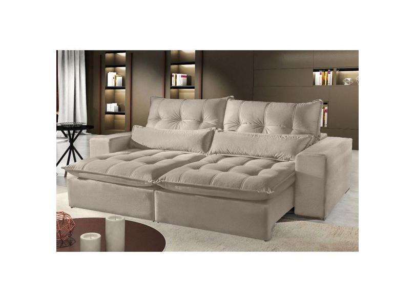Sofá 2 Lugares Retrátil e Reclinável Máximo 2.10m Veludo Bege