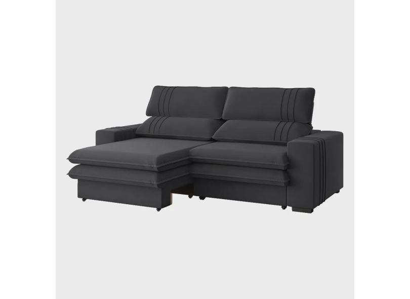 Sofá 2 Lugares Retrátil Noruega 270 cm Veludo Grafite Pés Tabaco - D'Rossi