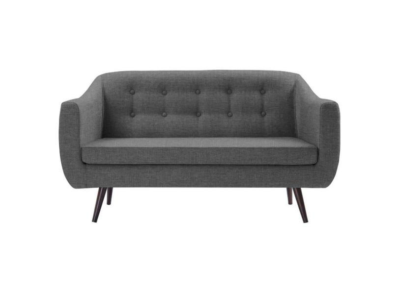 Sofá 2 Lugares Retrô Mimo Botonê Daf Móveis 135 cm Madeira Eucalipto Linho Cinza Base Madeira Tauari