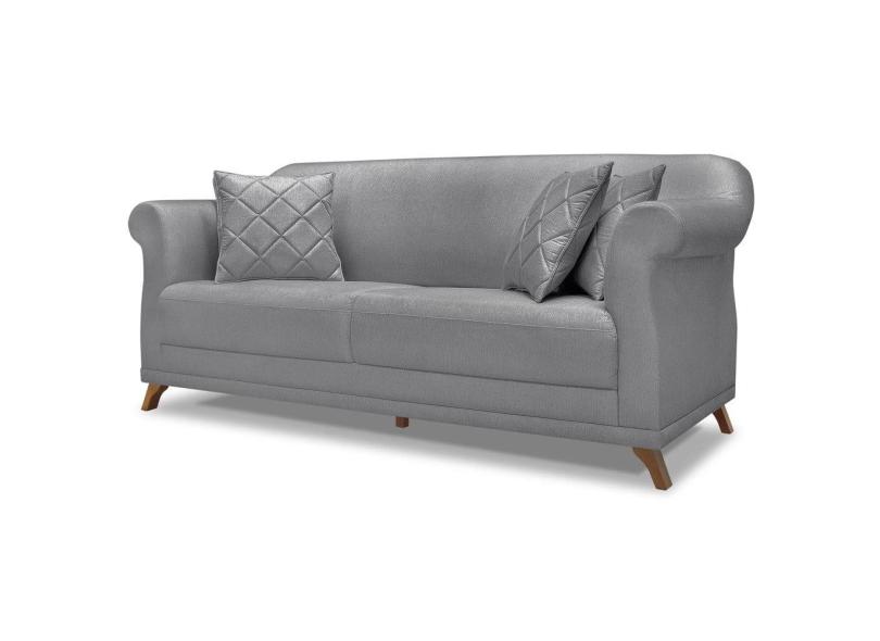 Sofa 2 Lugares Retro Polo 180cm Com Almofada Linho Cinza Ezz