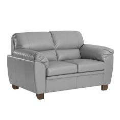 Sofá 2 Lugares Sala de Estar Pés em Madeira Nauru Couro Cinza - Gran Belo
