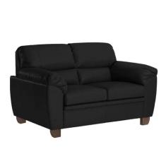 Sofá 2 Lugares Sala de Estar Pés em Madeira Nauru Couro Preto - Gran Belo