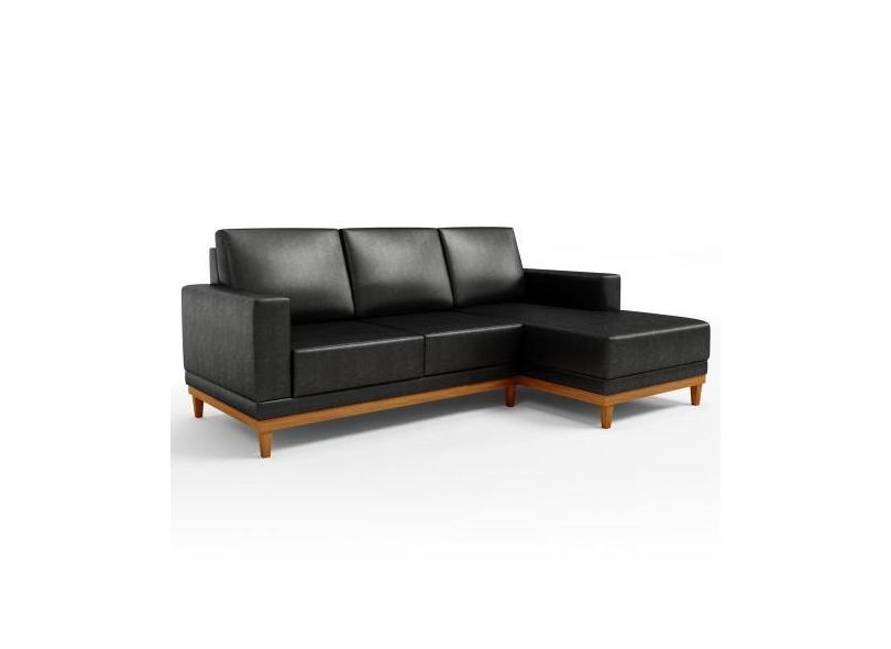 Sofá 200cm Com Chaise Esquerdo Kayrós Material Sintético D05 Preto - M