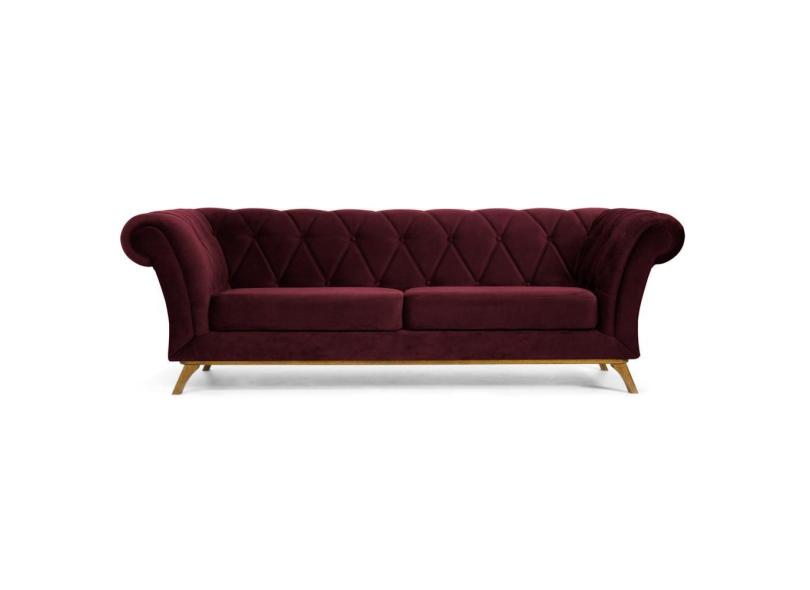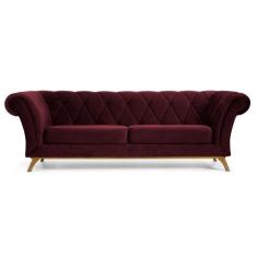 Sofá 210cm 3 Lugares Base Madeira Império C-278 Veludo Marsala - Domi