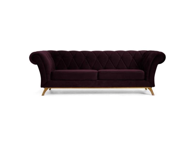 Sofá 230cm 3 Lugares Base Madeira Império B-292 Veludo Uva