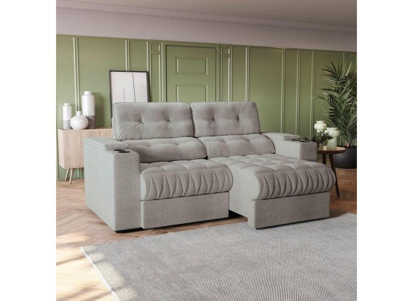 Sofá 230cm com Porta Copos Retrátil e Reclinável Premier Cinza