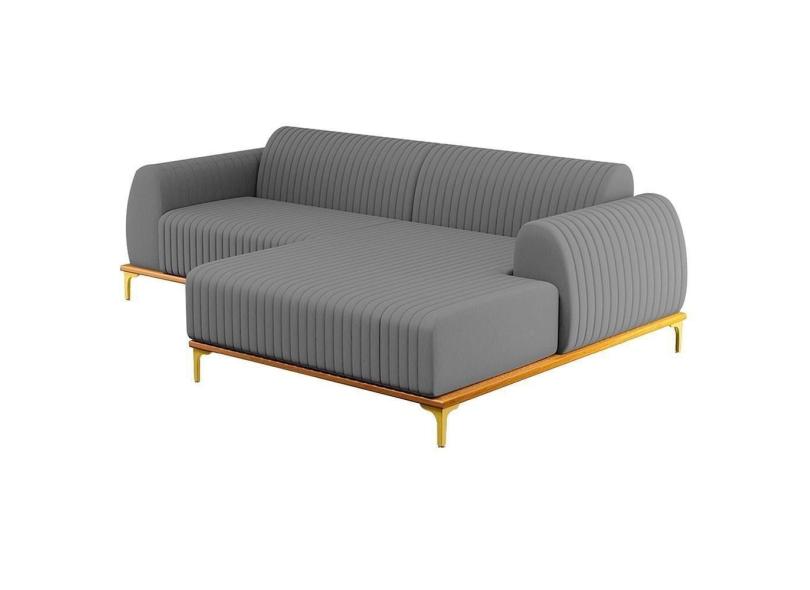 Sofá 265cm 4 Lugares Chaise Direito Pés Gold Cinza Escuro