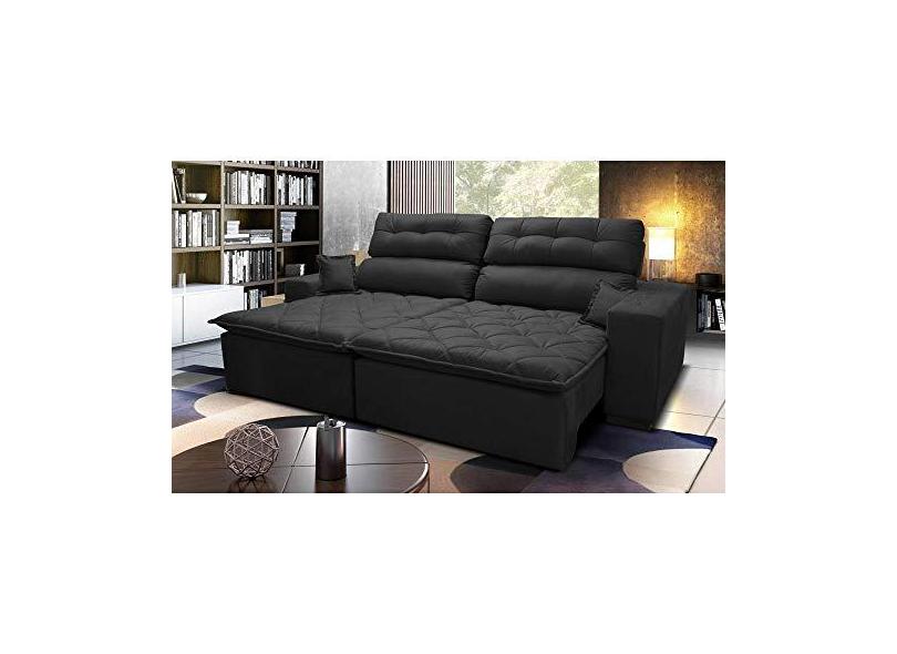Sofá 3,02m Retrátil e Reclinável com Molas Cama Inbox Confort Tecido Suede Velusoft Preto