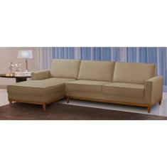 Sofá 3 Lugares 2,10m Living Com Chaise Esquerdo Lavinia Linho Bege Adonai Estofados