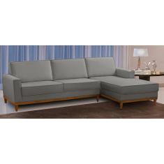 Sofá 3 Lugares 2,60m Living com Chaise Lavinia Linho Cinza Adonai Estofados