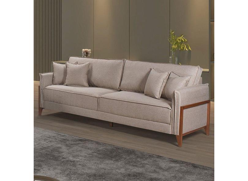 Sofá 3 Lugares 200cm Panamá com 4 Almofadas para Sala de Estar Aveludado Bege