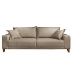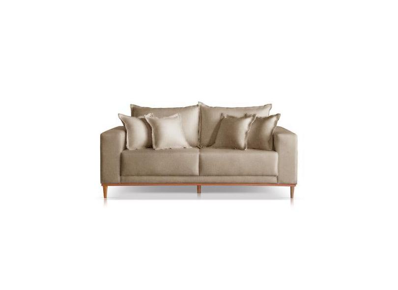 Sofá 3 Lugares Almofada Solta Base Madeira Linho Bege Medio Mila 1,8M