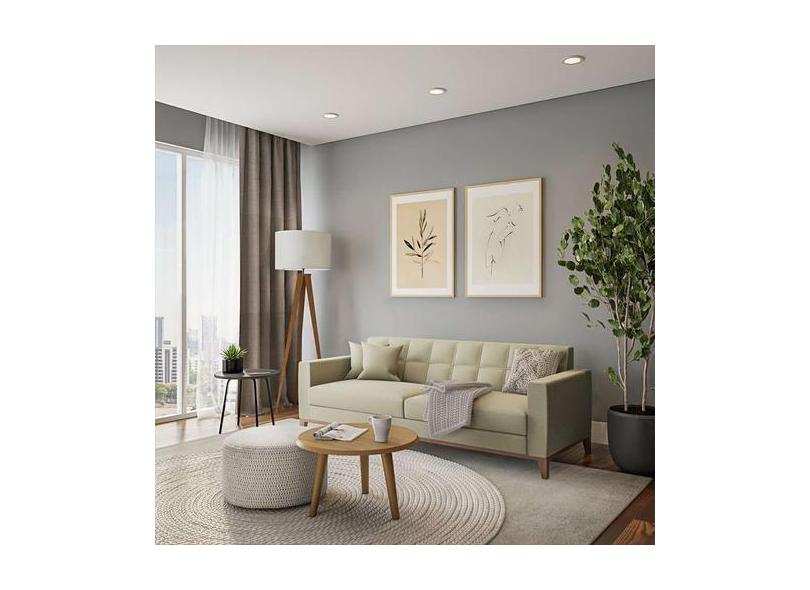 Sofá 3 Lugares Arhus Capitonê Bege - Mobly