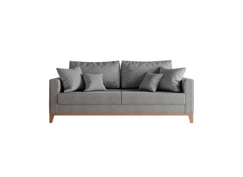 Sofá 3 Lugares Beny Base Em Madeira Linho Cinza - Bonequinha Móveis