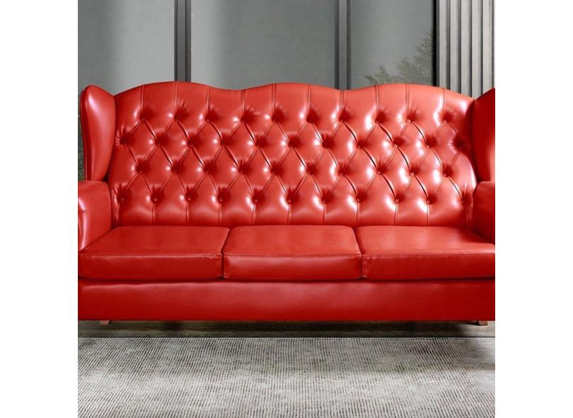 Sofá 3 Lugares Capitonê Vintage Imperador Chesterfield Vermelho
