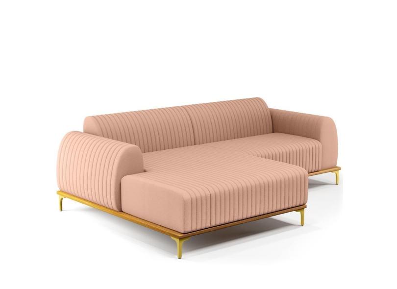 Sofá 3 Lugares Com Chaise De Estar Molino 230cm Rosê C-105