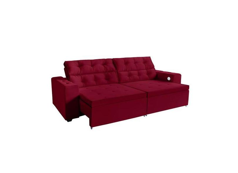 Sofá 3 Lugares Estella 2,10 Metros Vermelho Retrátil Reclinável Tecno