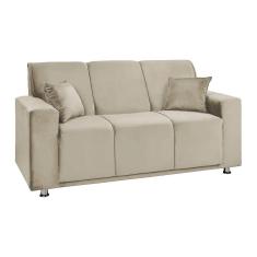 Sofá 3 Lugares Fixo Tokyo Veludo Shop Das Cabeceiras Bege Marfim