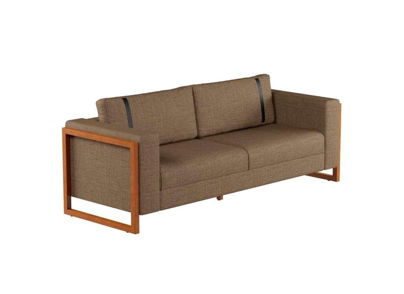 sofá 3 lugares lin linho marrom e amêndoa 200 cm